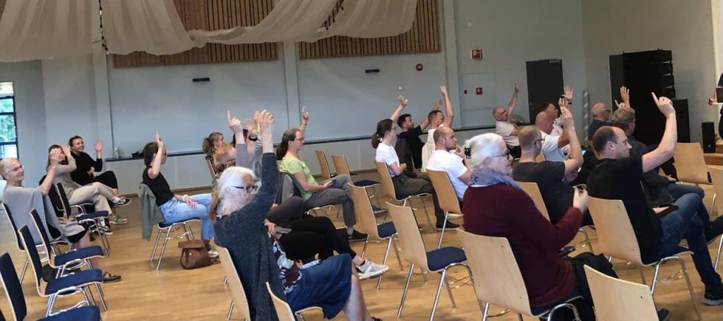 Møtetble holdt på Dal Gård med de påmeldte fysisk tilstedet.